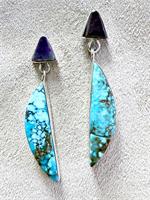 Na Na Ping (Pascua Yaqui) Post Dangle Earrings with Sugilite and Black Jade and Sugilite in Sterling Silver
