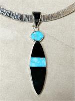 Beautiful pendant that measures 2 11/16" long by 3/4" wide. With the bale (with inlaid Black Jade)